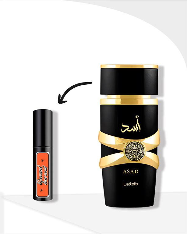 Asad de Lattafa Perfumes es una fragancia de la familia olfativa Oriental para Hombres. Asad se lanzó en 2021. Las Notas de Salida son pimienta negra, tabaco y piña; las Notas de Corazón son pachulí, café y iris; las Notas de Fondo son vainilla, ámbar, Madera seca, benjuí y ládano.